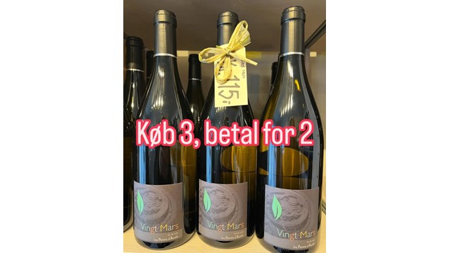 Vingt Mars fra Loire, er på tilbud indtil påske, spar 33% ved køb af 3 fl. For 230kr.
