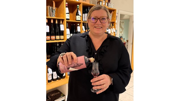 Annette giver smagsprøver på Ratafia Kirsebær likør fra Abruzzo.