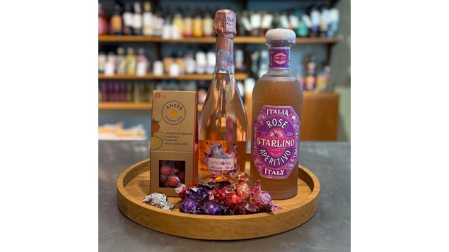 Giv en gave med smag, stil og sommerstemning – rosé, vermouth og chokolade i perfekt harmoni.